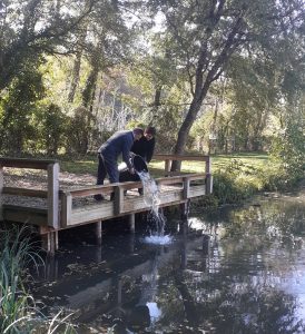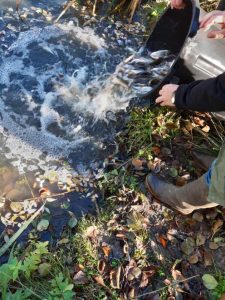 merci aux benevoles120 kgs de gardons 30 kgs de perches 30 kgs de tanches . amis cormorans restez chez vous